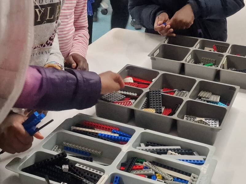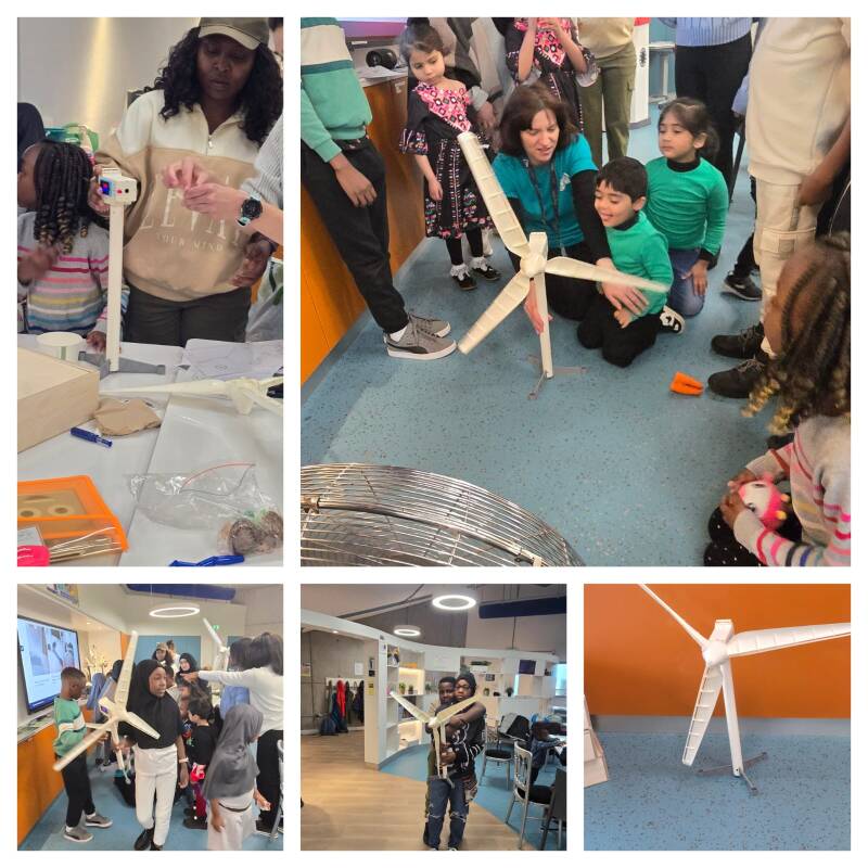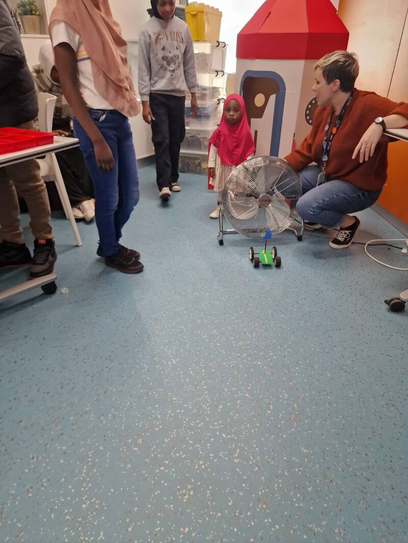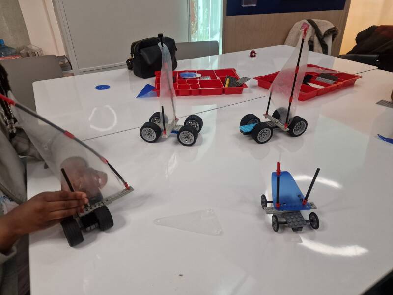 Children's activities for the day to building a wind turbine and a Lego land yacht.