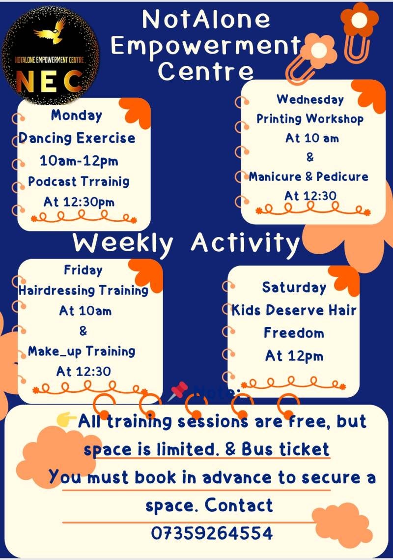 NotAlone Empowerment Centre--NEC weekly activities, contact to join us,you are all welcome